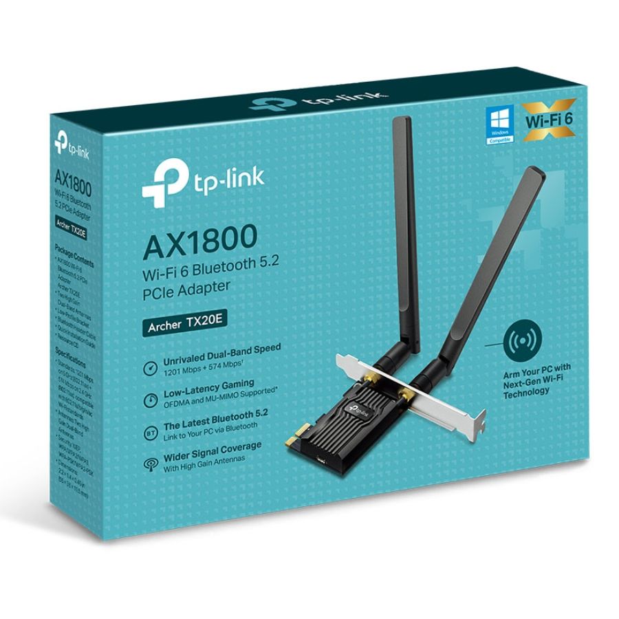 Contenido del Paquete : Archer TX20E, Dos antenas de doble banda de alta ganancia, Soporte de perfil bajo, Cable de cabecera Bluetooth, Guía de Instalación Rápida, CD de recursos