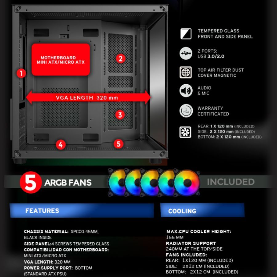 Iluminacion : ARGB en 5 ventiladores incluidos