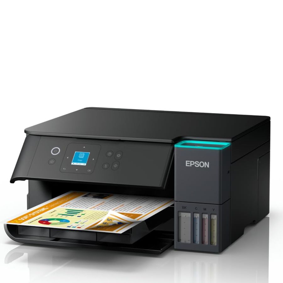 Contenido de la caja : Impresora L4360, manual, cable de alimentación, 1 tinta negra 504 (127 mL), 1 tinta cian, magenta y amarilla (70 mL)